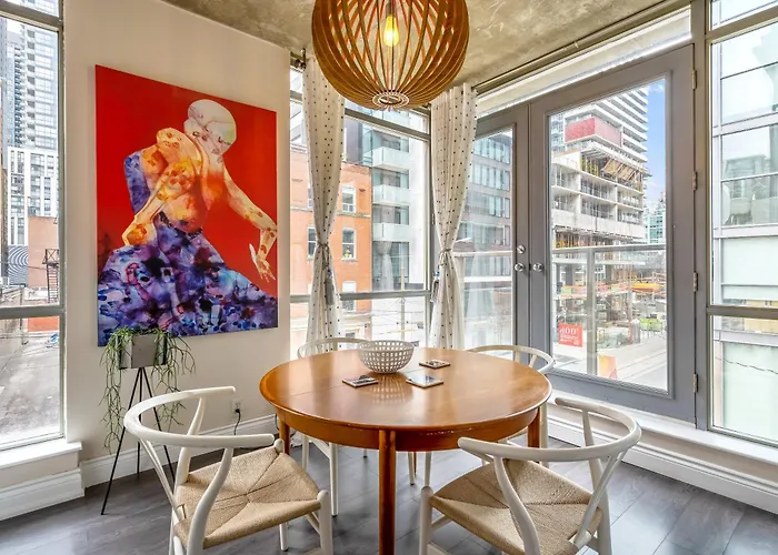 Il Spacious Corner Apartment Downtown Toronto include servizi di self-catering come un bollitore elettrico, un frigo e una vetreria per la comodità degli ospiti. L'aeroporto più vicino è di Toronto-City Billy Bishop, a 5 km da questo alloggio.